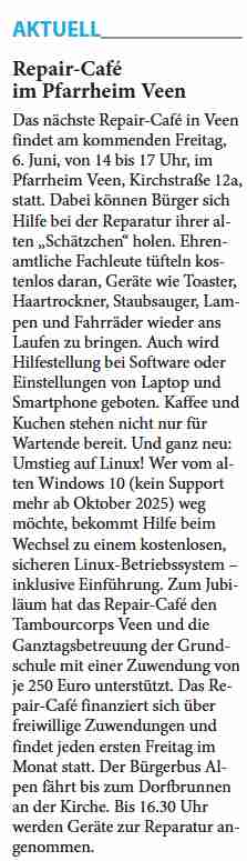 neues Repaircafé in Kalkar